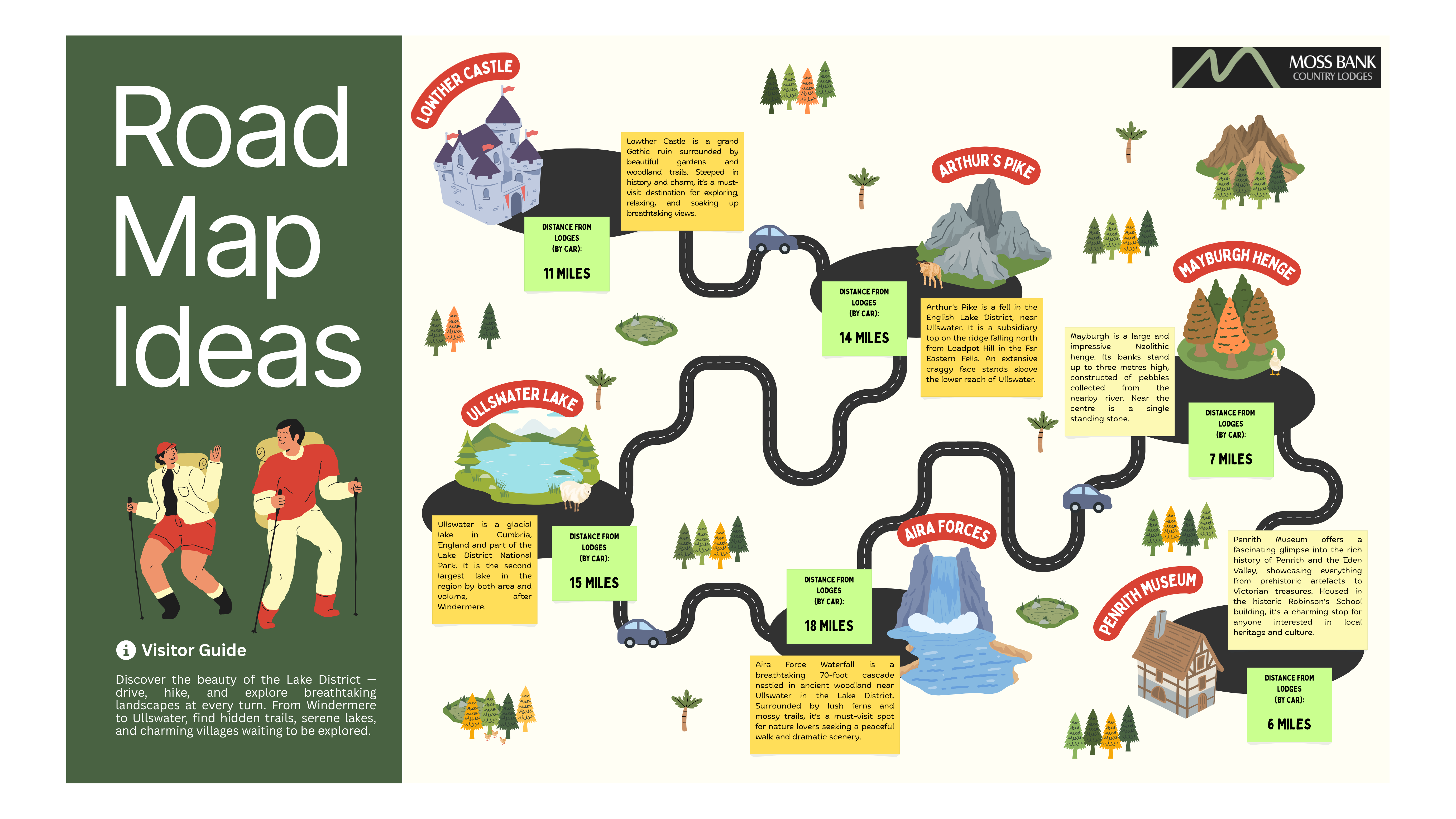 Nestled in the heart of Cumbria, Moss Bank Country Lodges offers the perfect base for discovering the Lake District’s breathtaking beauty and rich history — all just a short, scenic drive away. Whether you’re seeking grand castles, ancient landmarks, or peaceful lake walks, there’s something nearby for every kind of traveller. Here are some of our favourite local gems you can explore by car from Moss Bank.